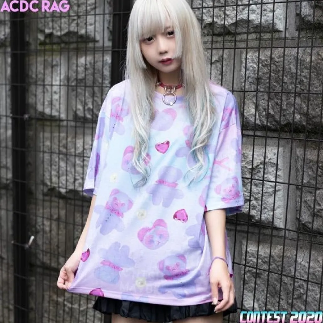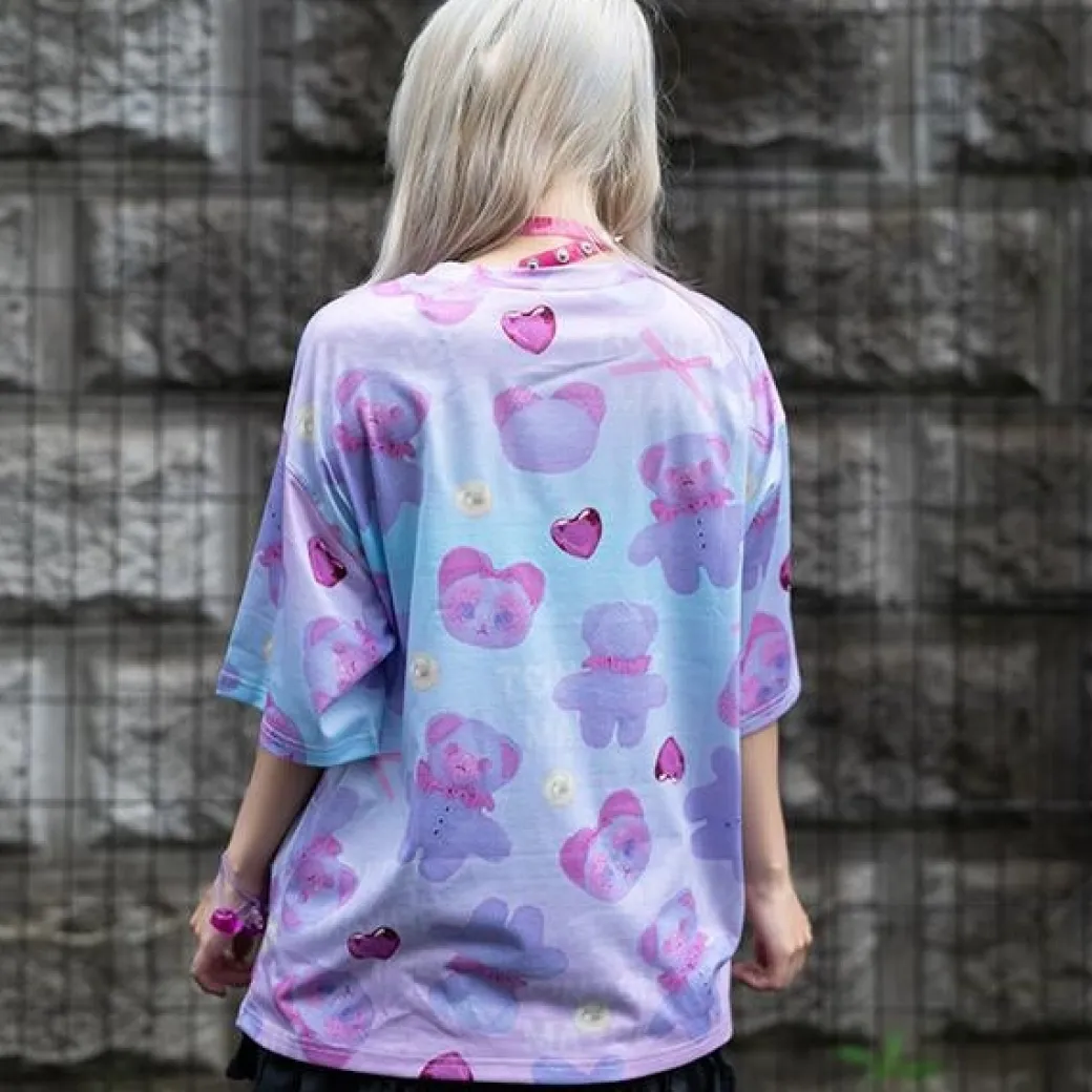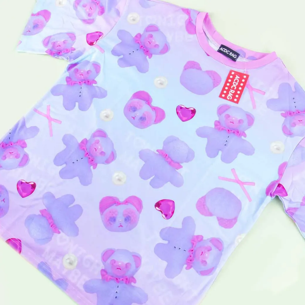 - A super cute t-shirt featuring pastel bears and jewel hearts