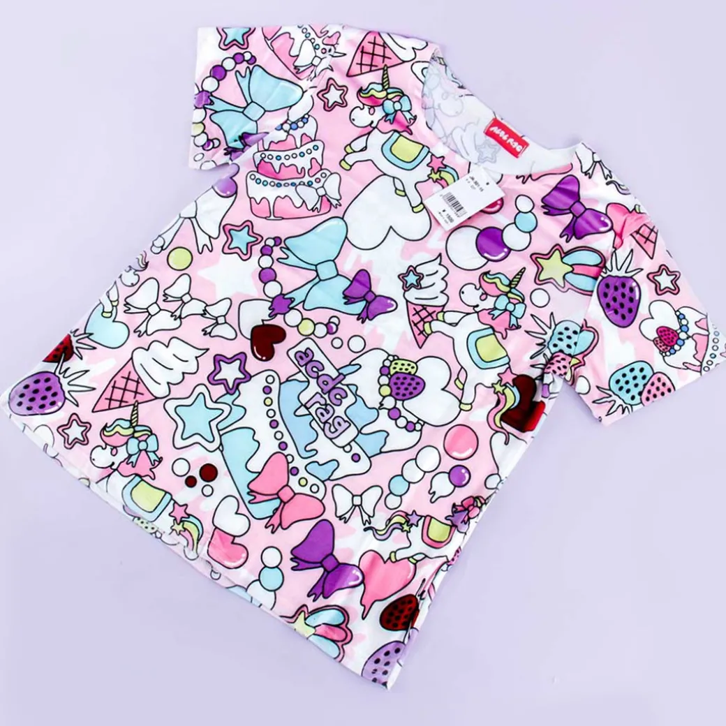 - A cute t-shirt with illustrations of unicorns, cakes, hearts, and other kawaii stuff