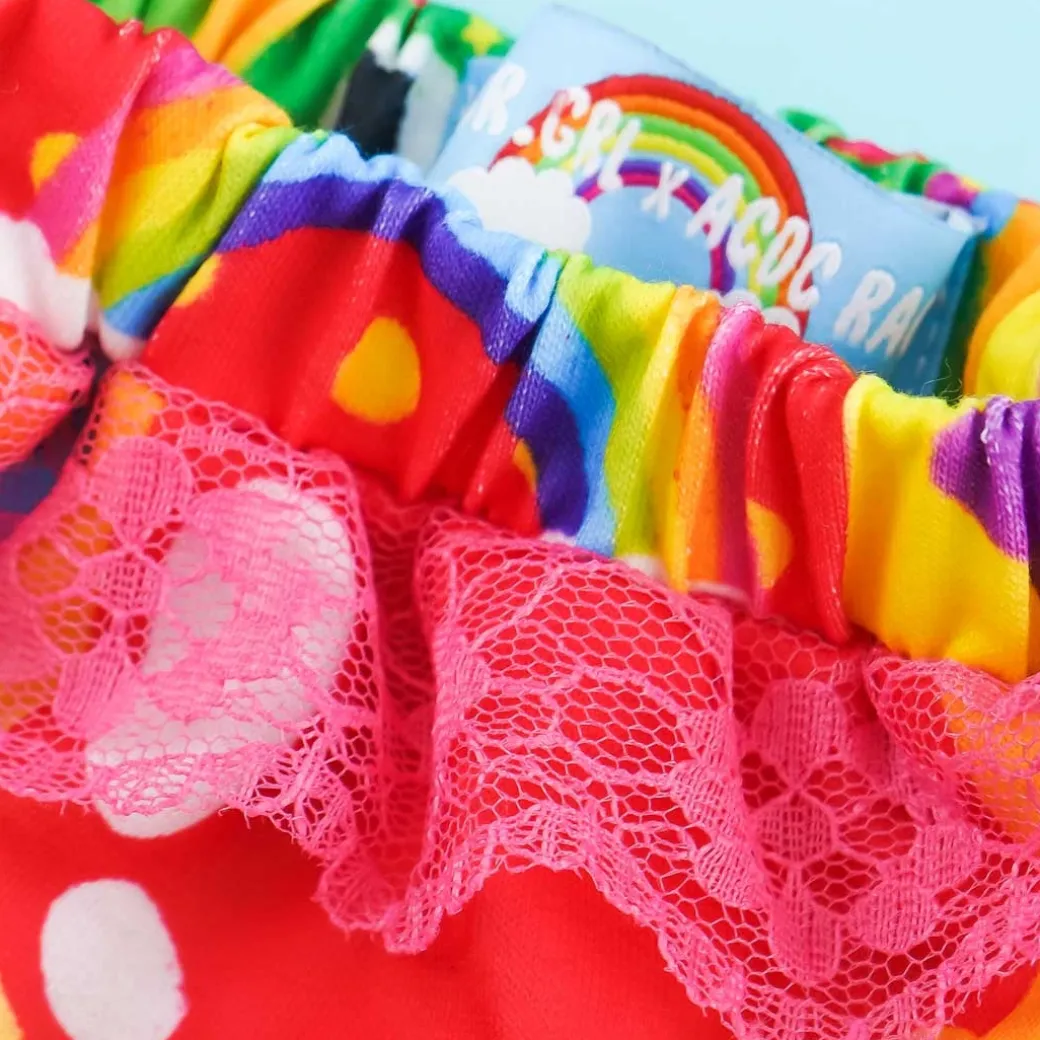 - A super cute pair of leg warmers with colorful prints inspired by Harajuku culture