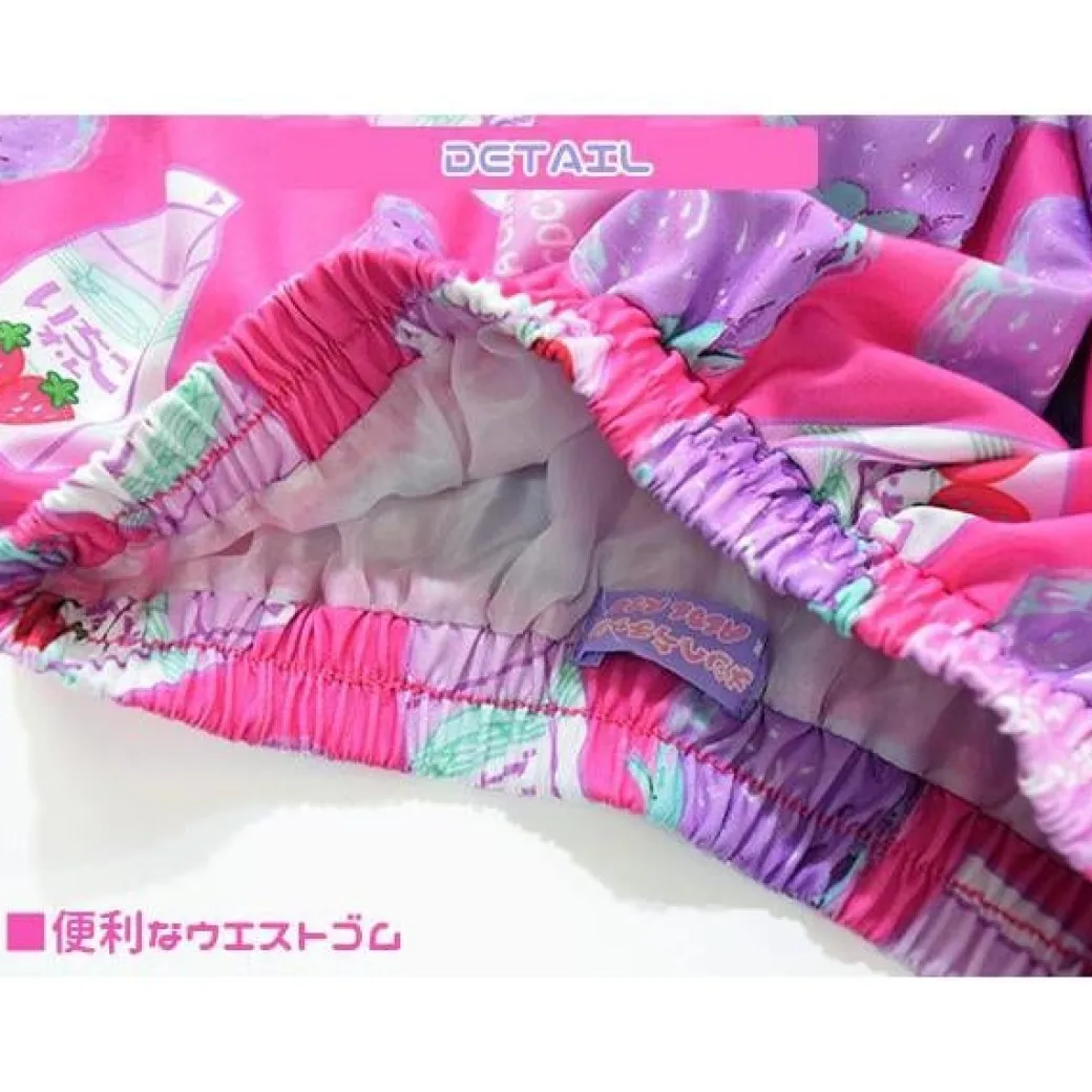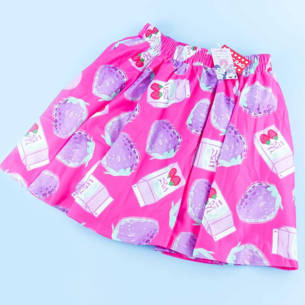 - A cute flare skirt featuring prints of milk cartons and strawberries from the Menhara-chan clothing line