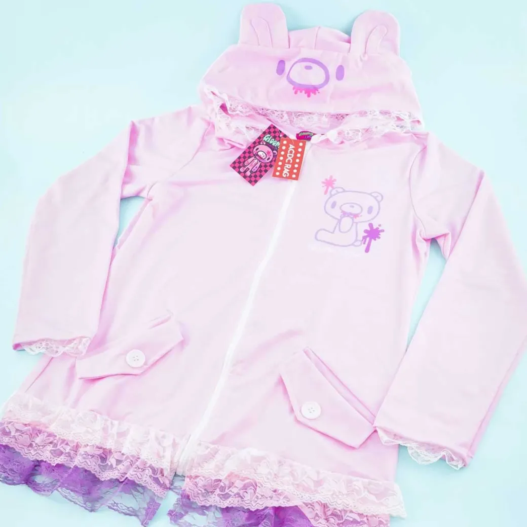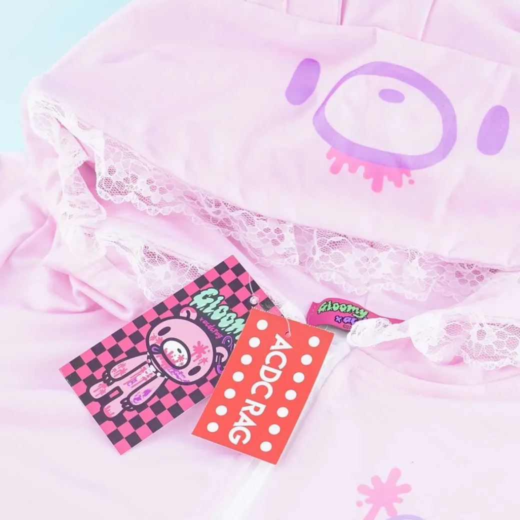 - Features a Gloomy Bear hood and a fun, frilly design