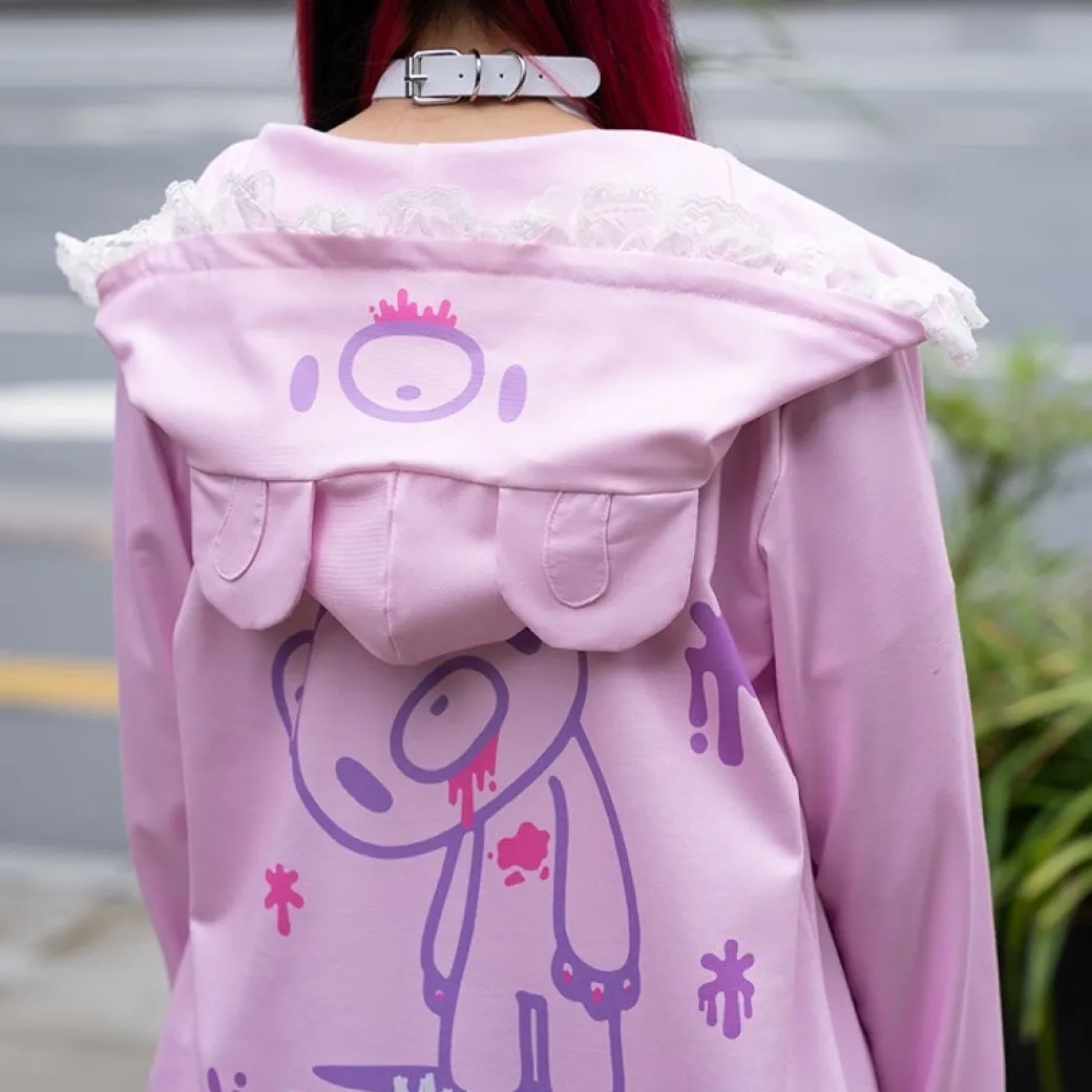 - A super kawaii pastel-colored hoodie featuring prints of Gloomy Bear