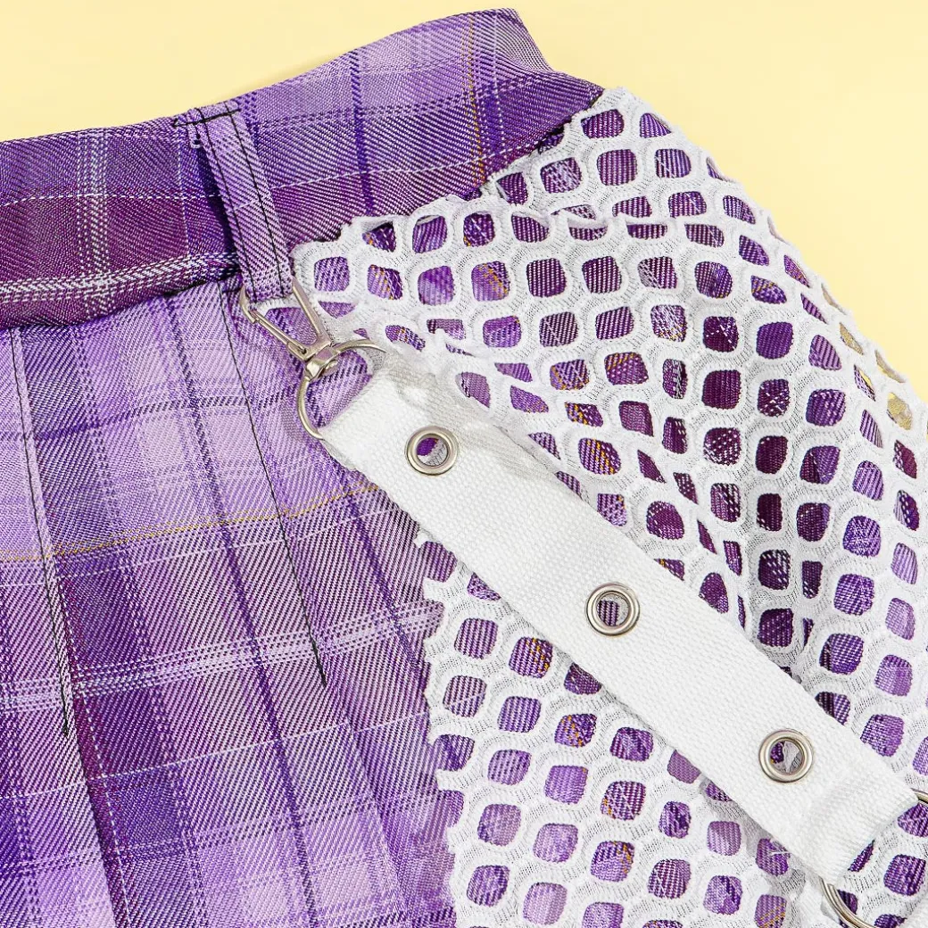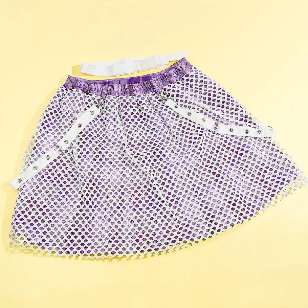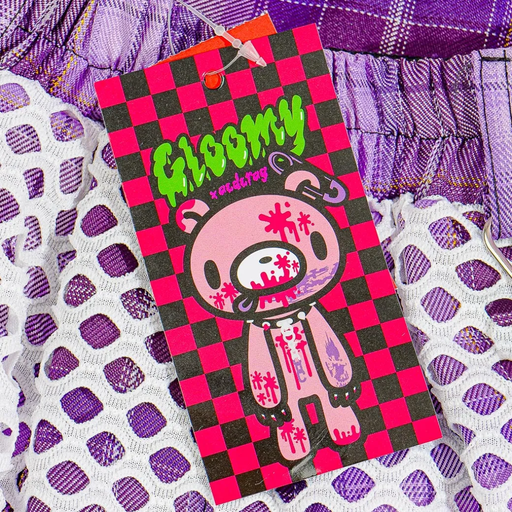 Kawaii-fy your school girl look by wearing this super cute skirt! It’s decorated with a mix of purple plaid, white mesh, and removable white straps. This kawaii skirt is a collaboration between Gloomy Bear, ACDC RAG, and Japanese artist, Guro Kawakuma!
