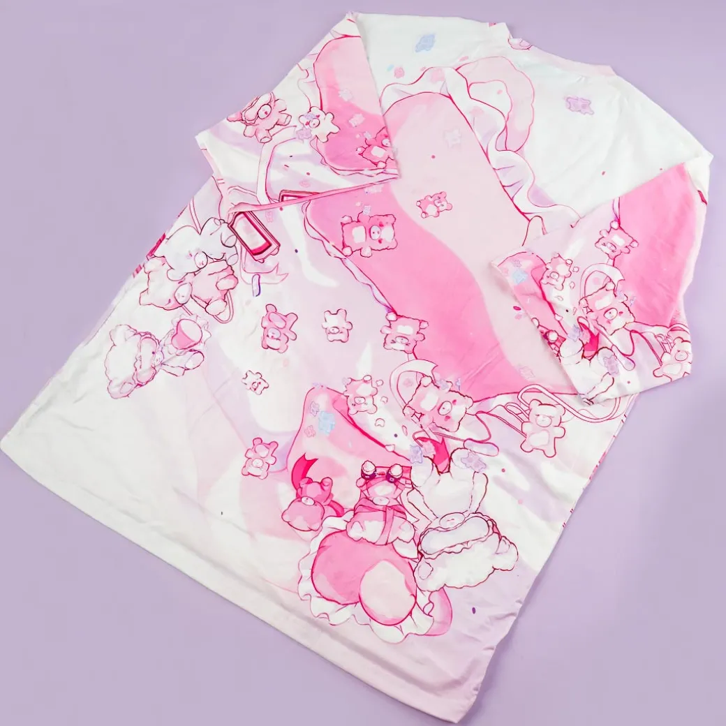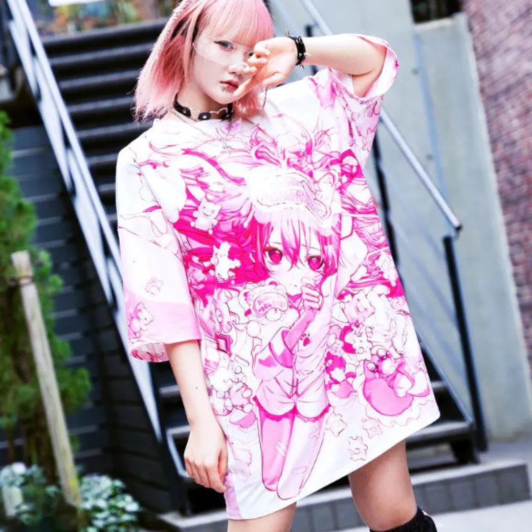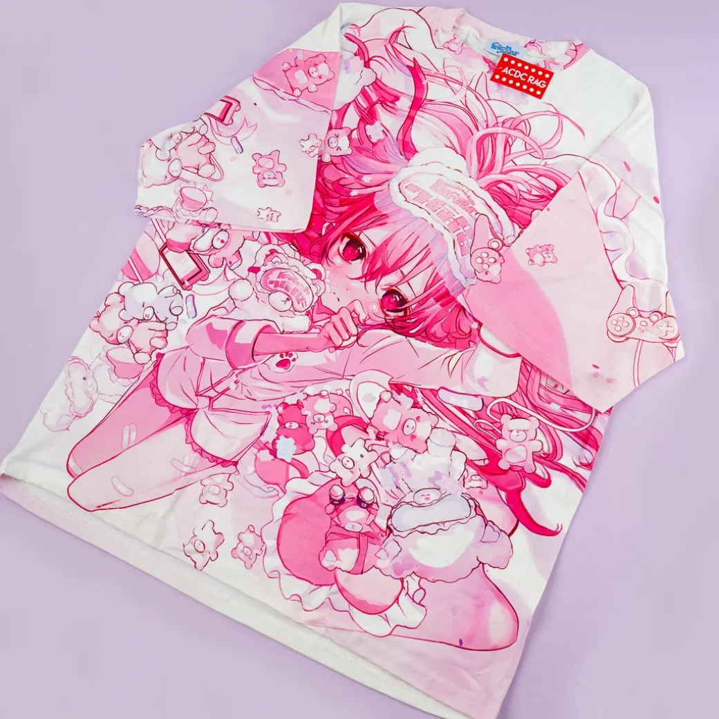 Put on this super kawaii oversized t-shirt while lounging around the house. It’s covered in prints of a cute anime girl surrounded by plushies! This shirt comes from ACDC RAG, a brand driven by a “No Borders” concept inspired from the Takeshita Dori street in Harajuku.