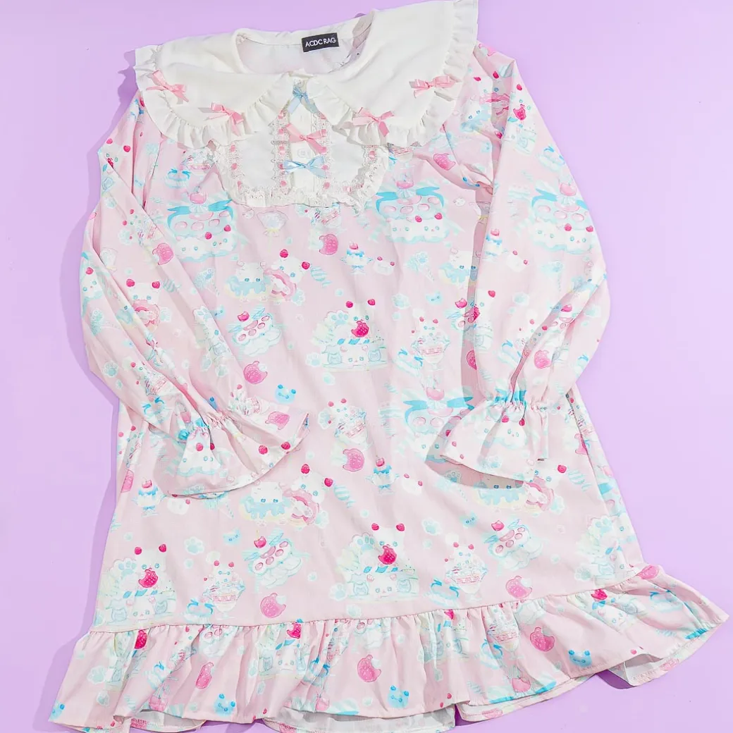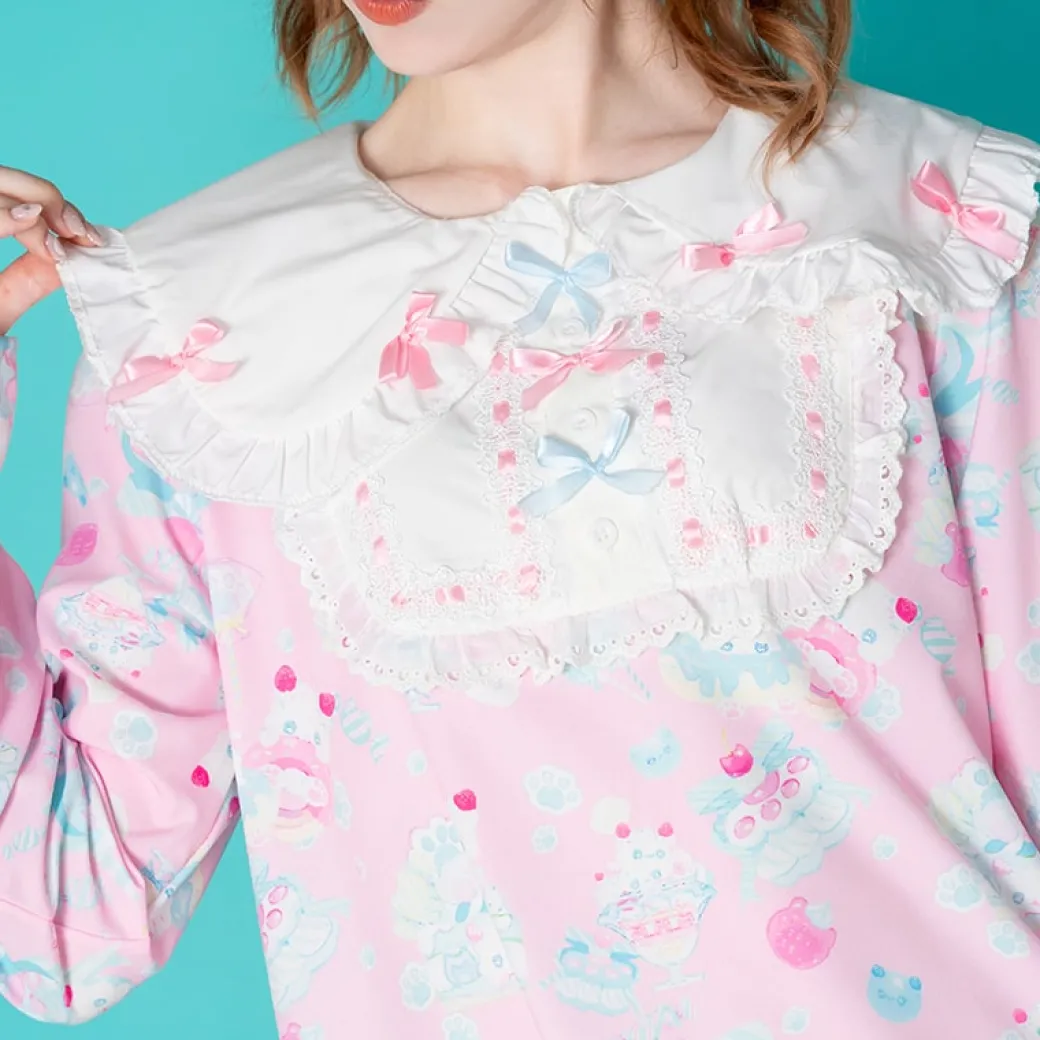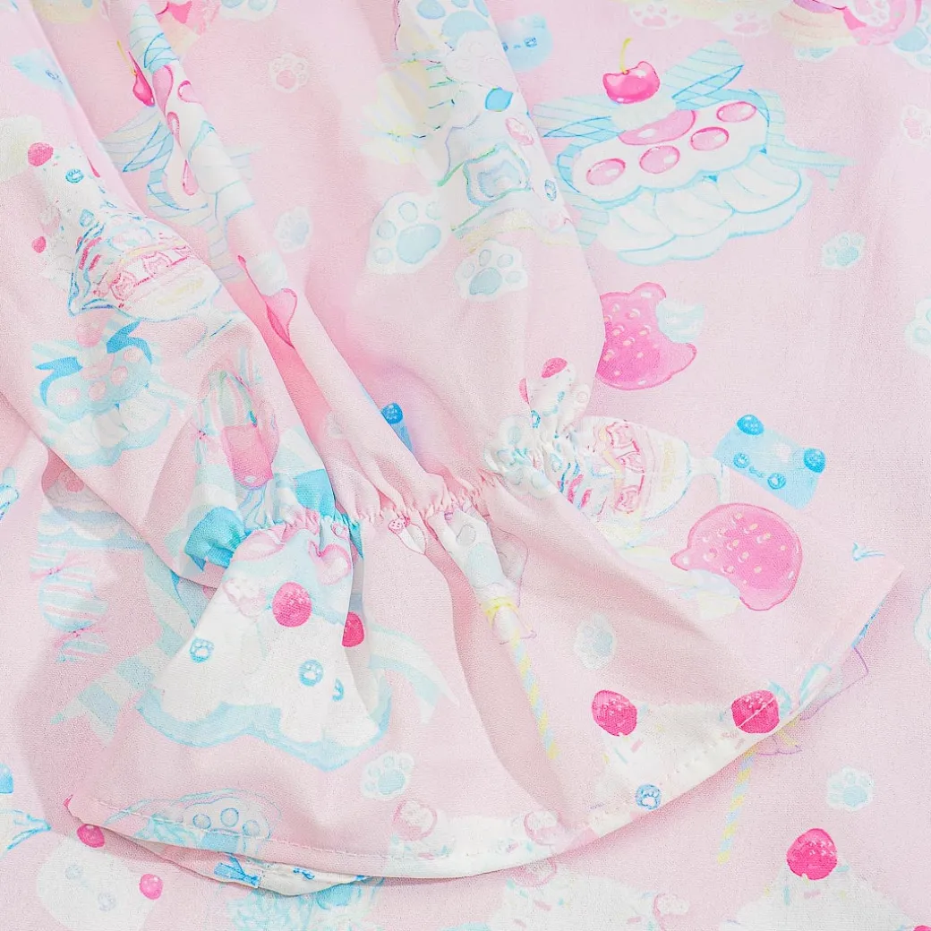 This super cute Harajuku-style pastel dress features prints of kawaii kittens and ribbon decors. It comes from a Japanese clothing brand inspired by a “No Borders” concept from Takeshita-dori in Harajuku, Japan. Add it to your kawaii wardrobe for the season!