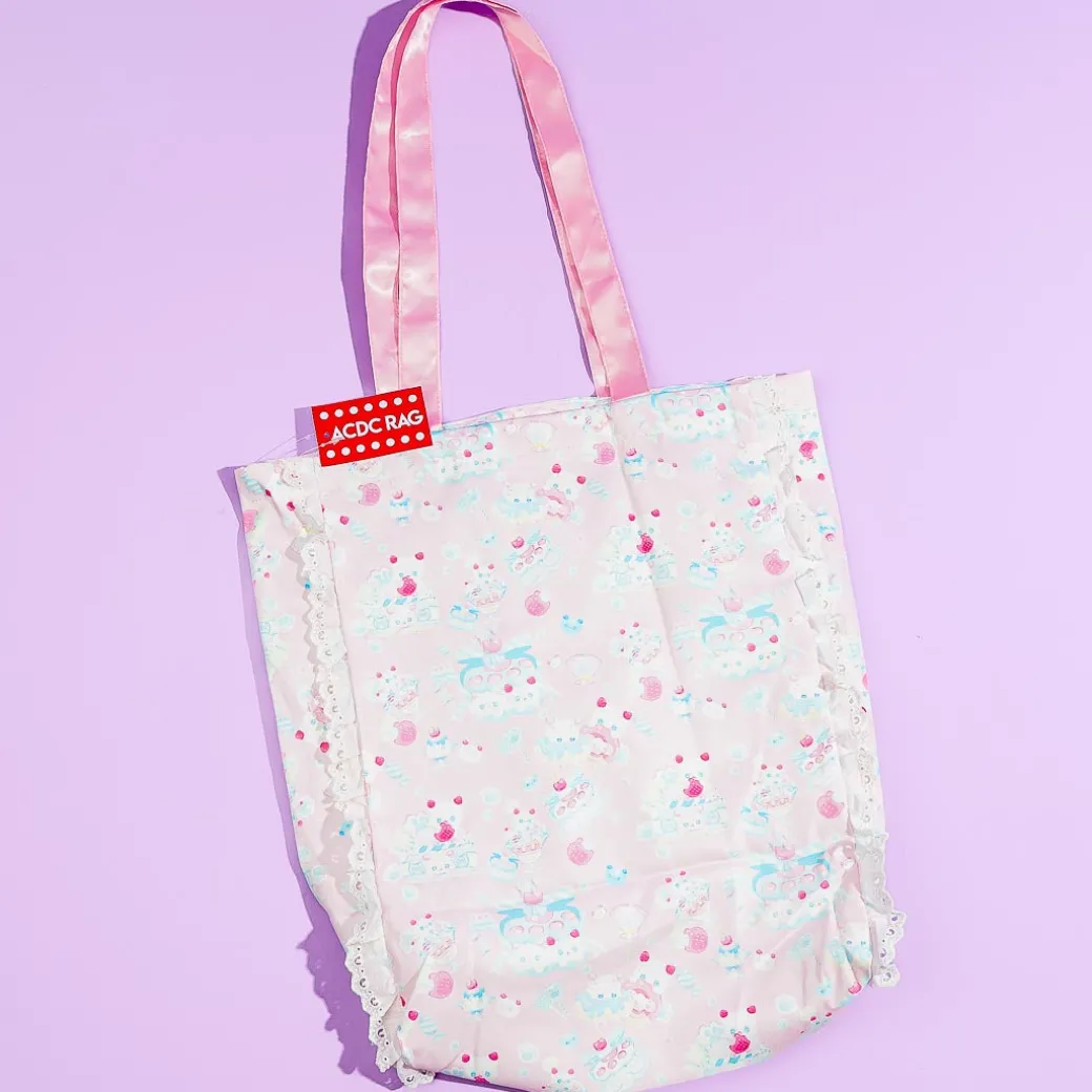 Head to the cafe carrying your essentials with this super cute Harajuku-style tote bag. It showcases prints of fluffy kittens and pastel-colored ribbon decors. This tote bag comes from a Japanese clothing brand inspired by a “No Borders” concept from Takeshita-dori in Harajuku, Japan.