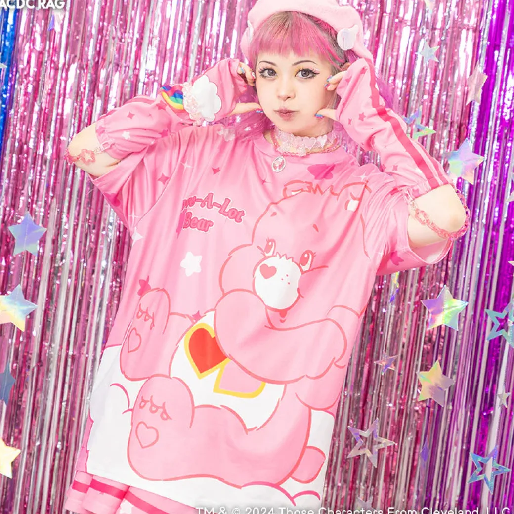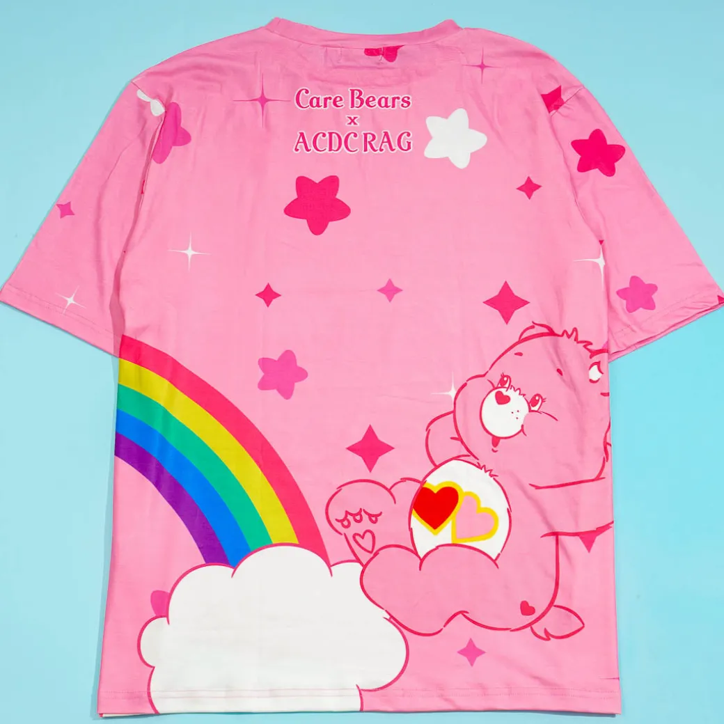 Step into the world of Care Bears with this super cute loose shirt! It features a vibrant and kawaii print of Love-a-Lot the pink bear. This shirt is perfect for adding a pop of color to your outfit!