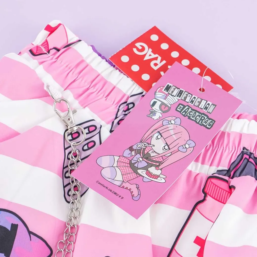 - Comes with white lace, pink and white stripes, and metal crosses with chains