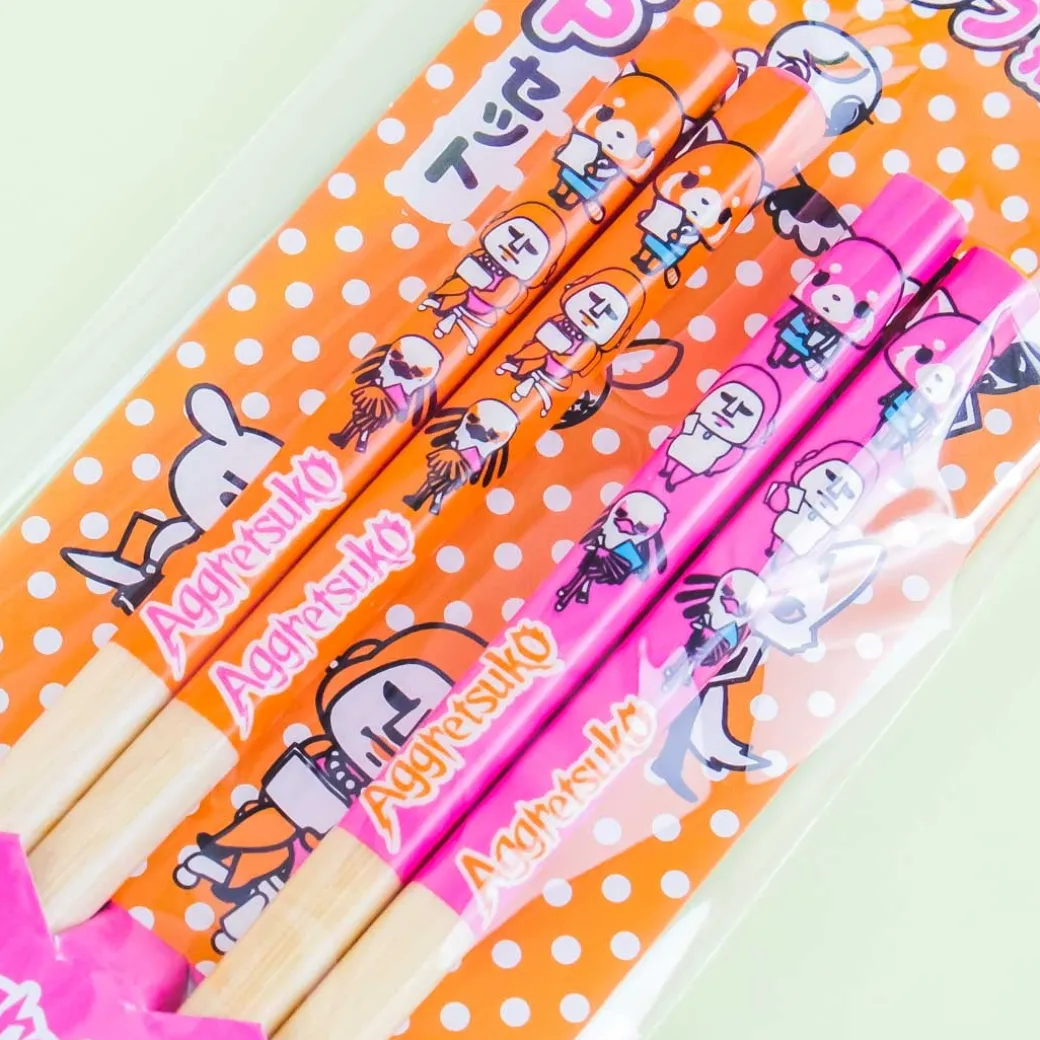 - A 2-pair set of bamboo chopsticks with Aggretsuko and her office friends