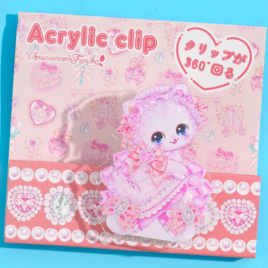 Organize your files and save book pages using this super cute acrylic clip! It features a cute kitten wearing magical jewels, from the illustration of Amenomori Fumika.