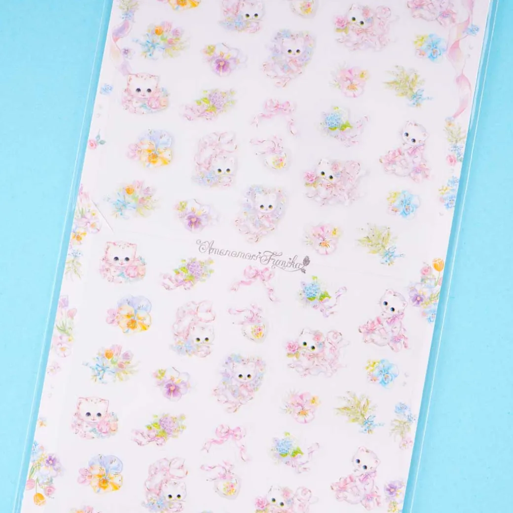 Have fun decorating your planner, journal, and notebooks with this sheet of cute stickers. It features super kawaii kittens playing with ribbons and flowers!