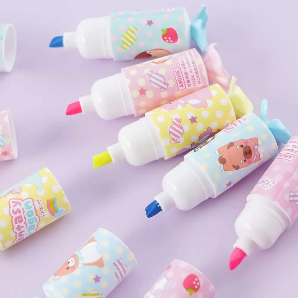 - A kawaii candy-shaped marker illustrated with prints of Amuse characters