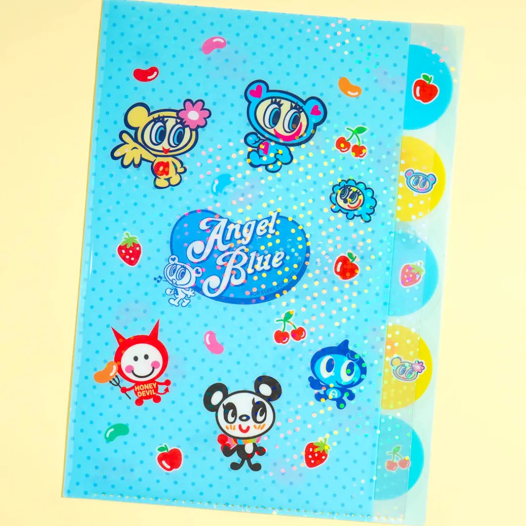 Organize your important documents inside this super cute index folder with five pockets and matching right-side tabs! It’s made of semi-transparent plastic and features illustrations of Angel Blue characters and fruity jelly beans.