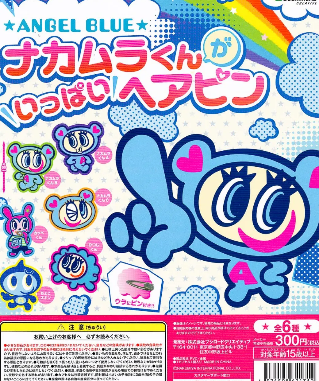 Enjoy collecting and wearing these super cute hair pins featuring the different looks of Nakamura-kun, the official mascot as well as other characters of ANGEL BLUE, a popular clothing brand in Japan back in the early 2000s!