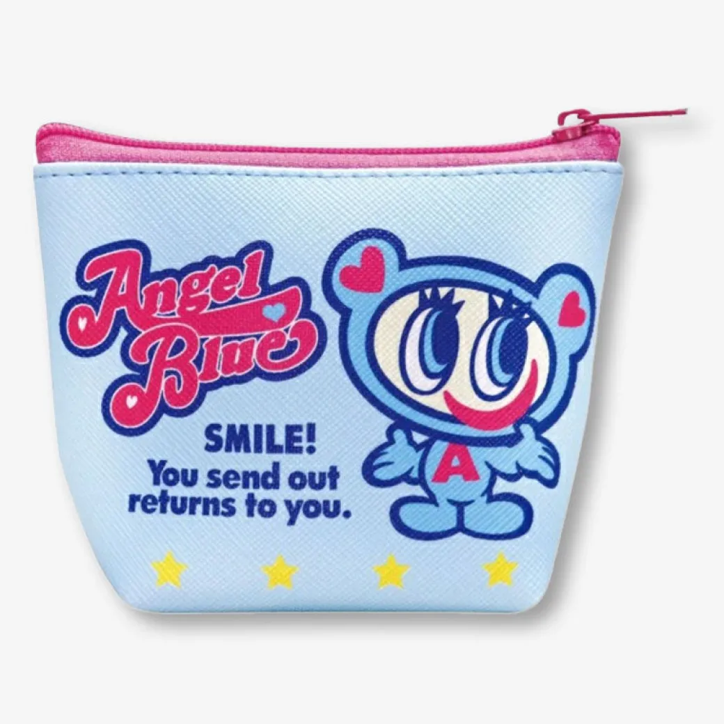 This cute zippered mini purse is perfect for holding small items like coins or keys. It features an illustration of the cute characters from the ’90s brand Angel Blue.