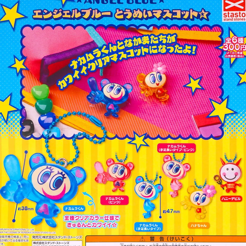 You can attach this kawaii transparent mascot charm to your favorite bag with its ball chain! It features the characters from the 90’s brand Angel Blue. There are six different designs to collect, all in Gachapon capsules!