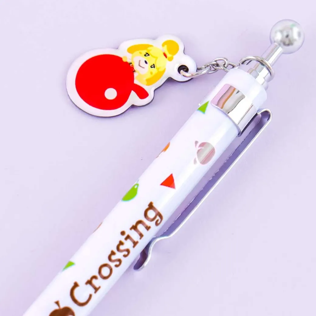 - A click pen with a hanging charm featuring Isabelle from Animal Crossing