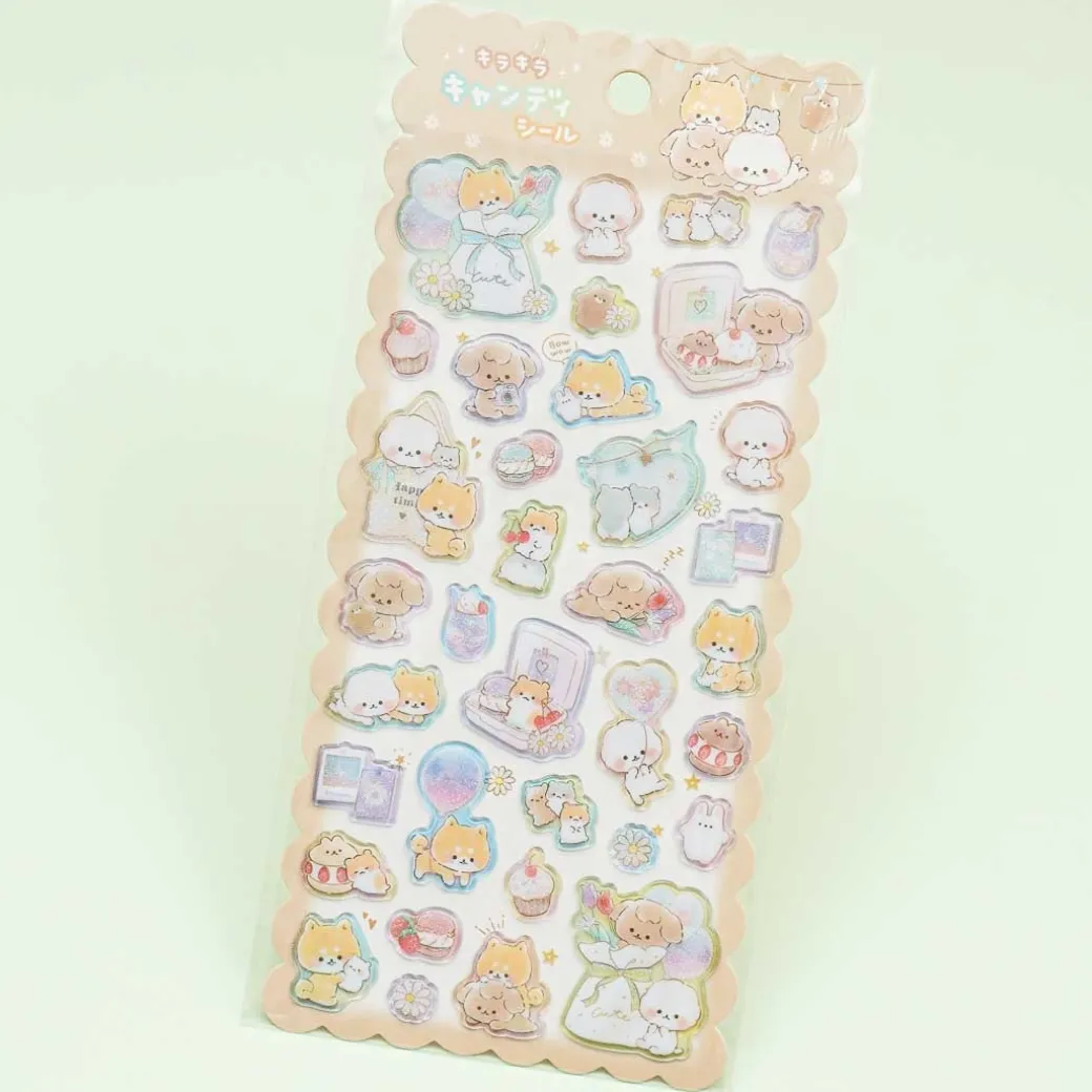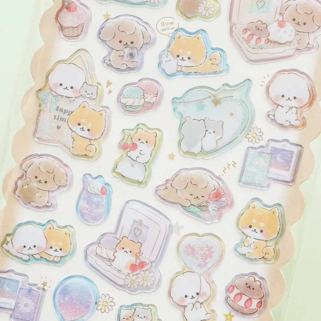 - A cute sheet of transparent stickers featuring animal friends doing different activities
