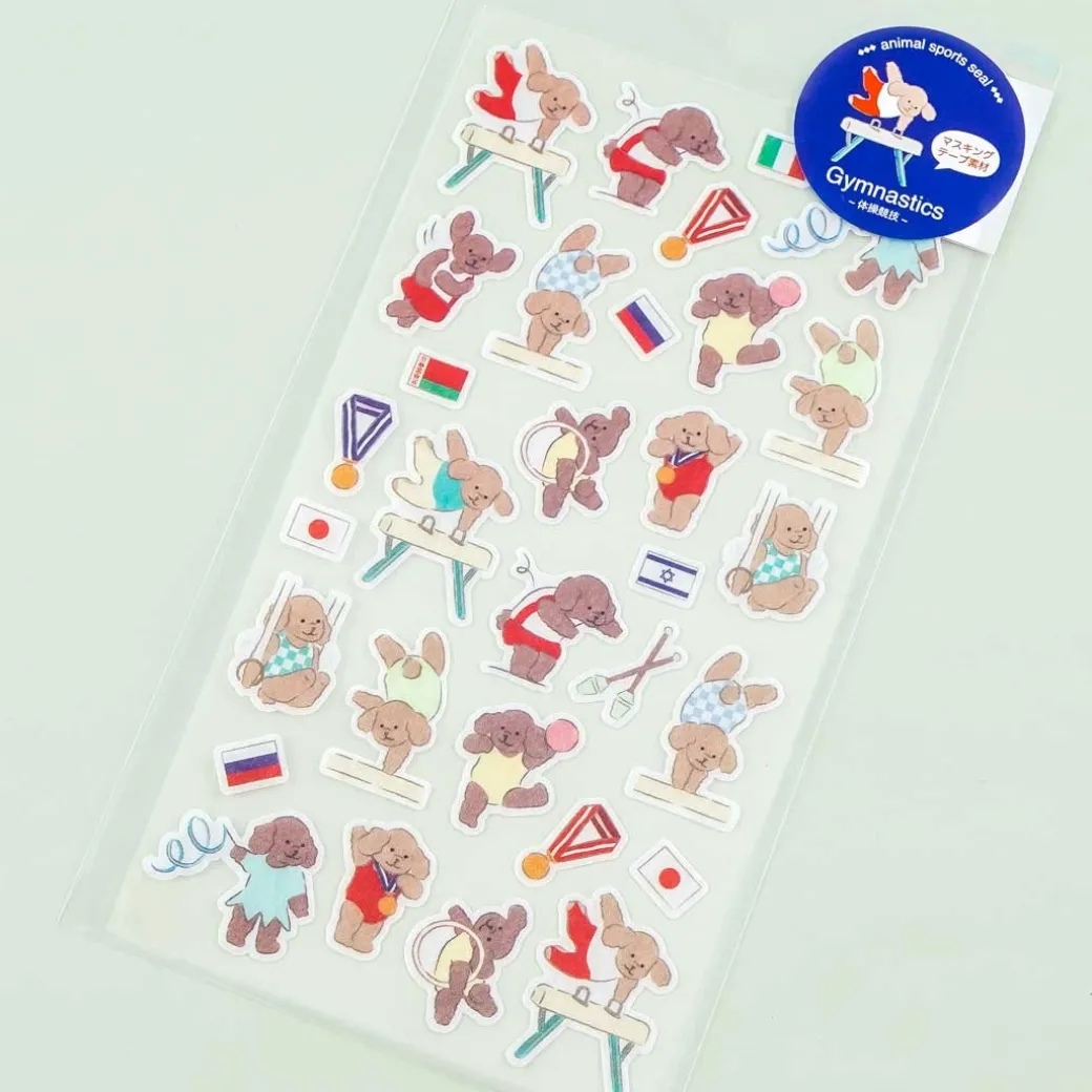 - A sheet of cute die-cut deco stickers with prints of poodles doing gymnastics