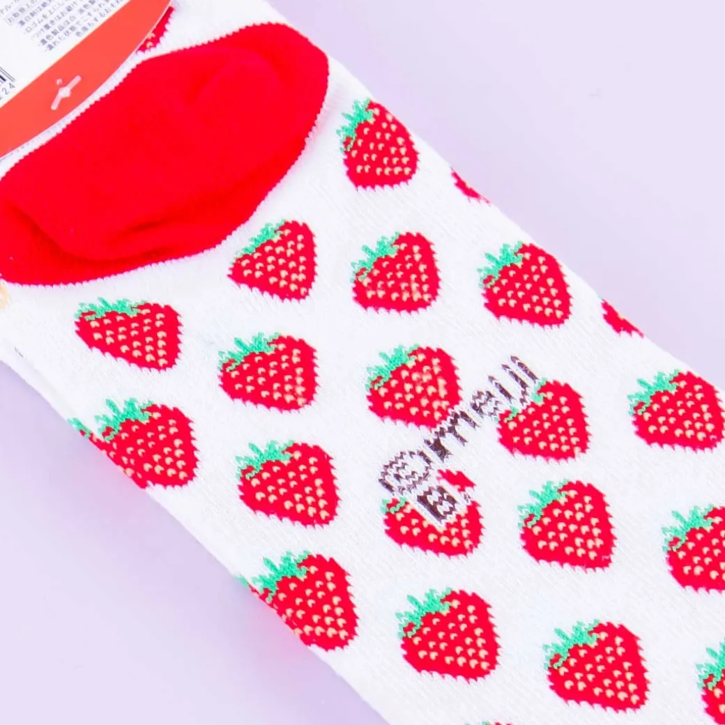 - A pair of socks resembling the Meiji Apollo Strawberry Chocolate packaging