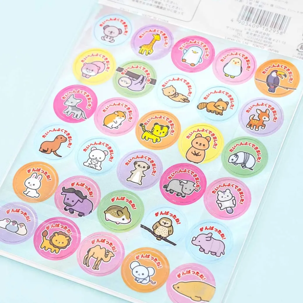 - A kawaii set of circle-shaped stickers with holographic details featuring baby animals