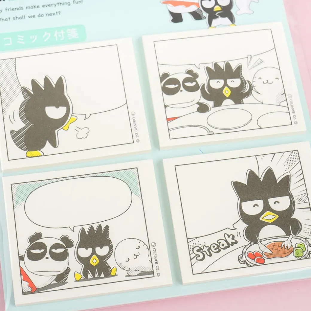 This kawaii sticky note set features text bubbles you can write on! It’s decorated with comic-style prints of Bad Badtz-Maru with his friends. You can use these sticky notes for writing reminders or short notes.