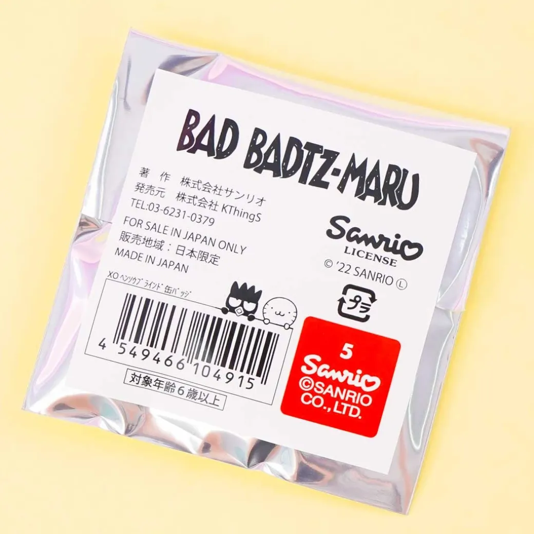 - A kawaii trading can badge illustrated with Bad Badtz Maru all dressed up