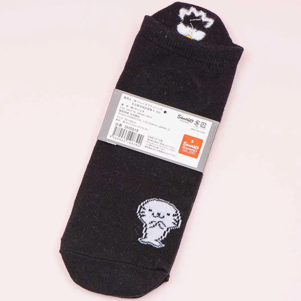 - A cute pair of heel socks with embroidery of Bad Badtz Maru