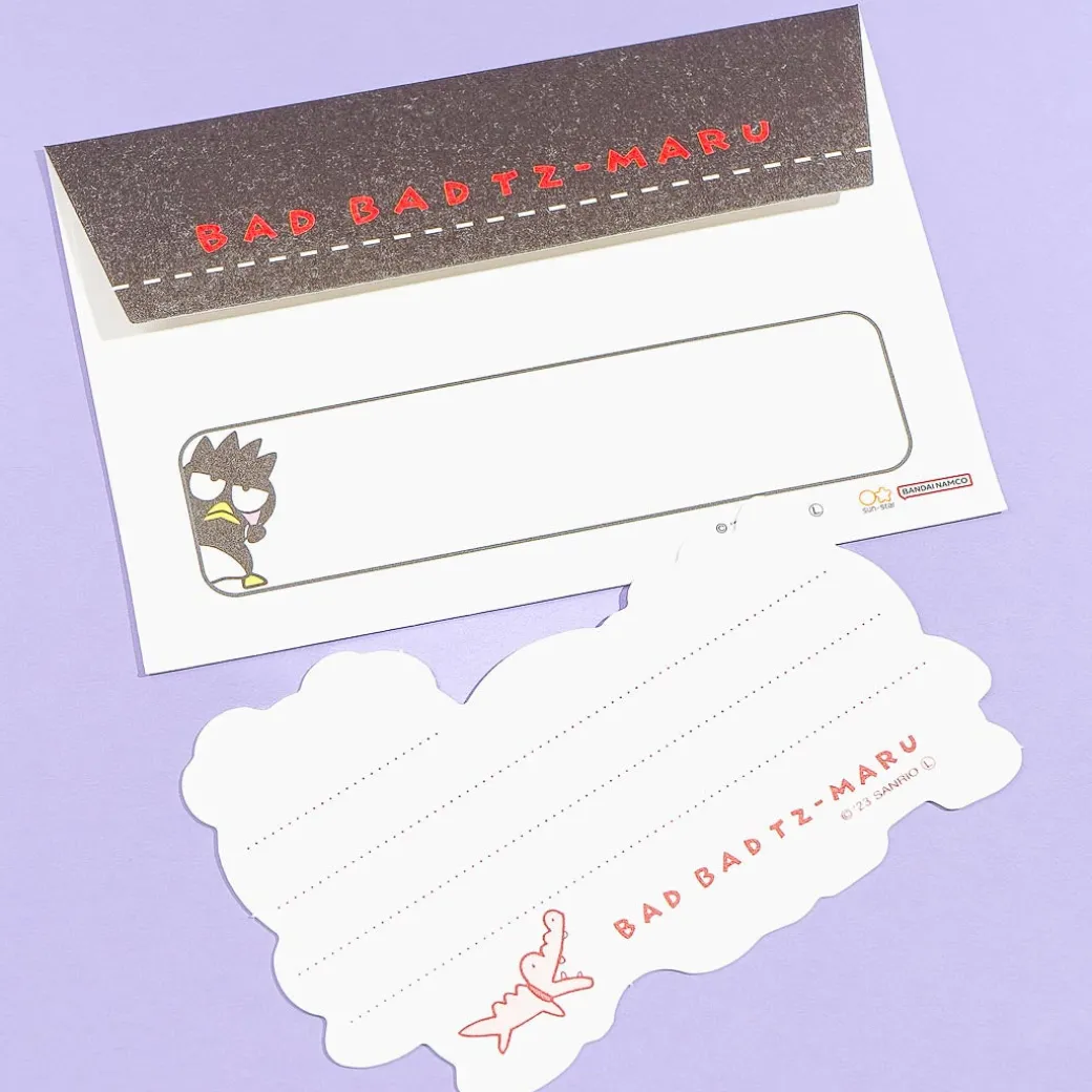 This kawaii mini letter set features die-cut sheets with retro version prints of Bad Badtz-Maru with his pals, Hana-Maru and Pandaba! Be inspired to write messages to your besties using this set.