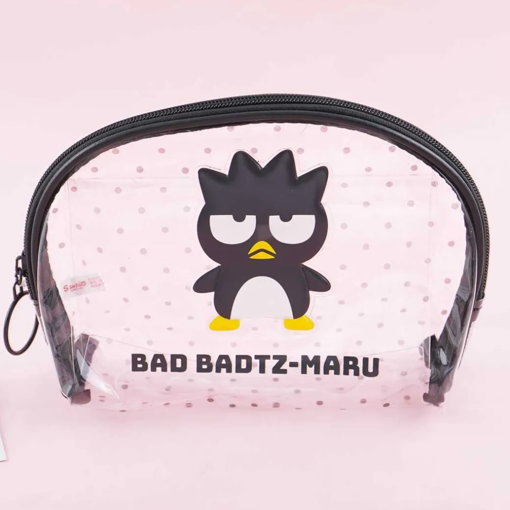 - A kawaii pouch printed with an illustration of Bad Badtz-Maru and tiny polka dots