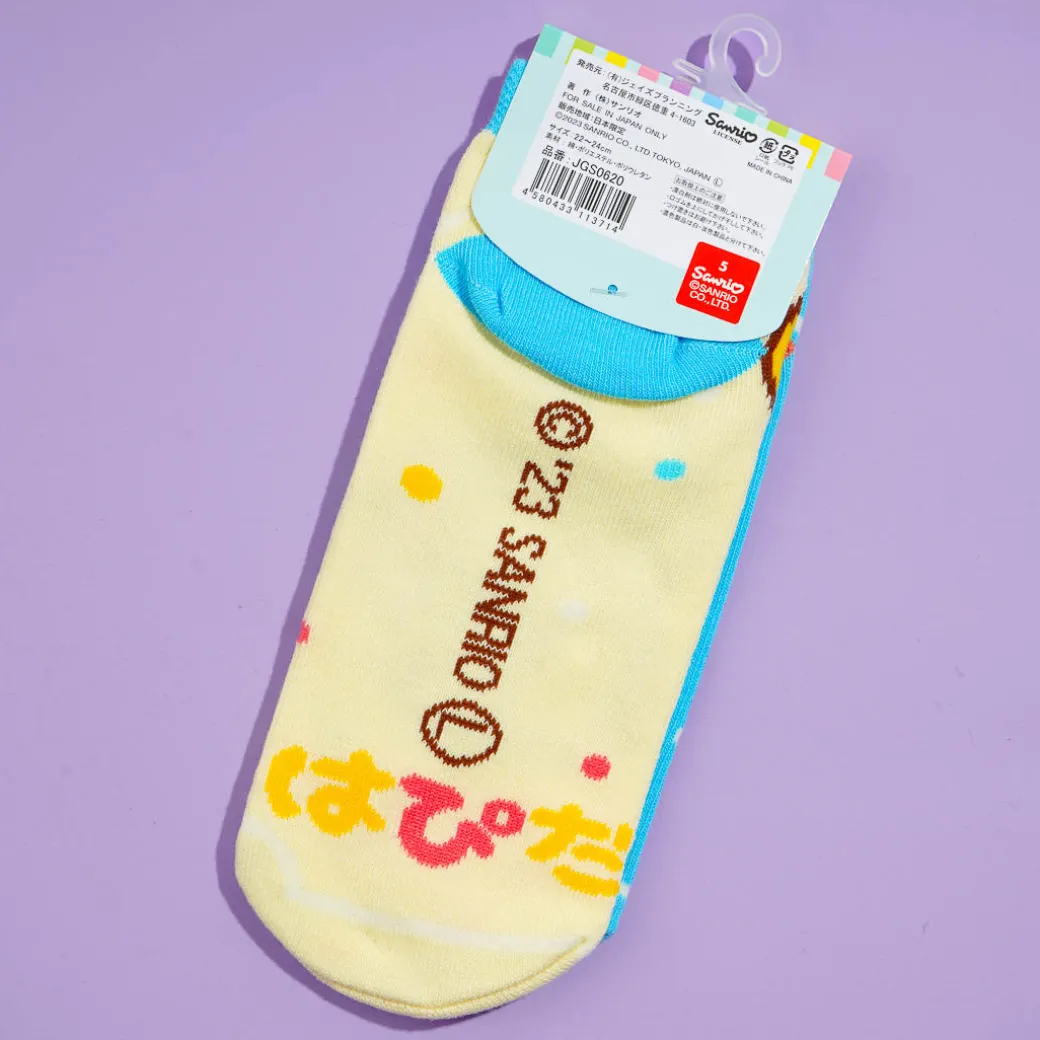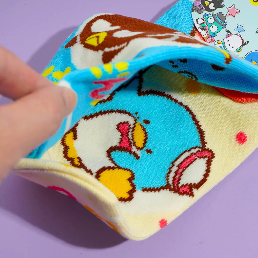 Wear this cute pair of socks while lounging around the house! It features prints of Tuxedosam and Badtz-Maru playing around. These socks have a nice dotted design.