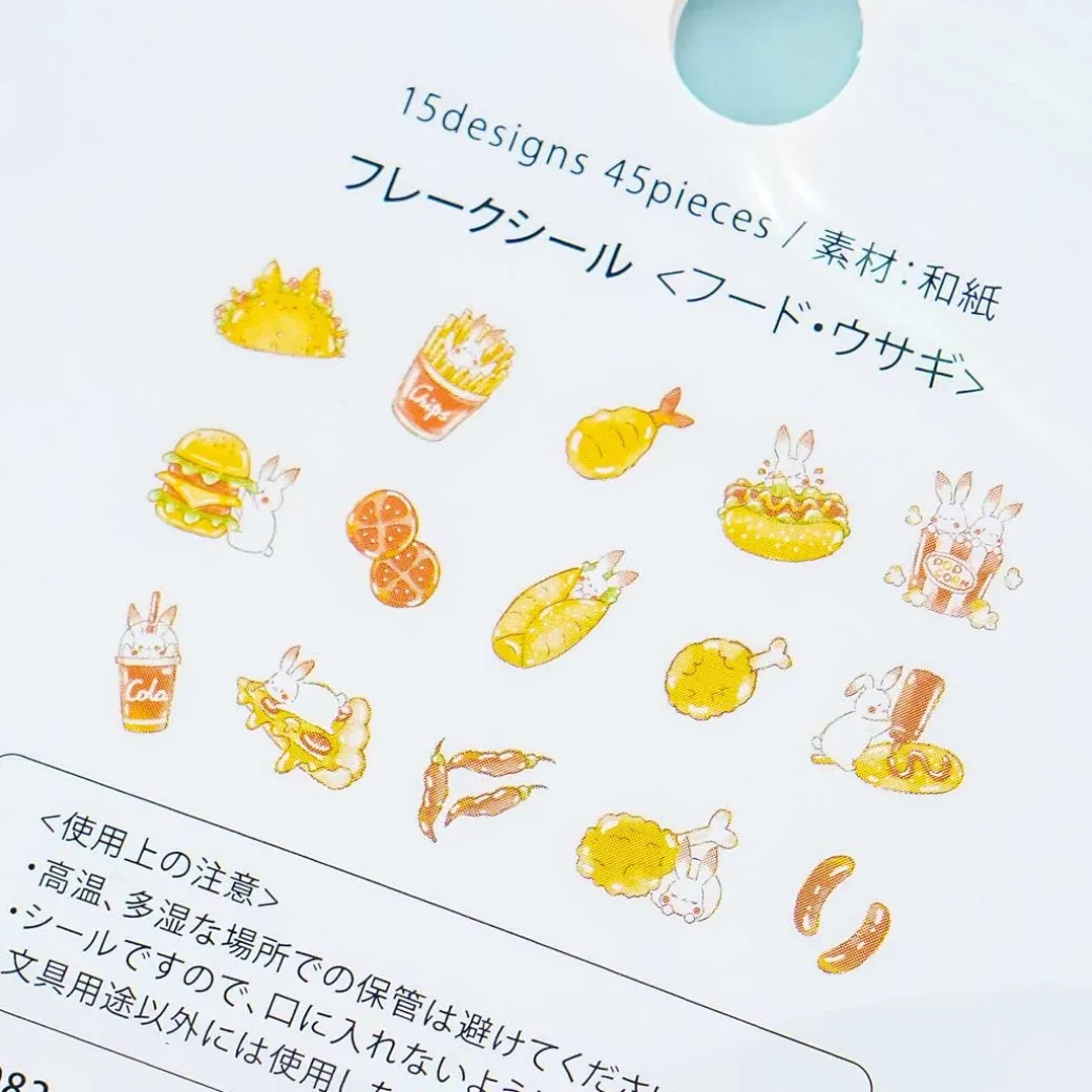 - A super kawaii set of die-cut sticker flakes featuring hungry bunnies with golden details