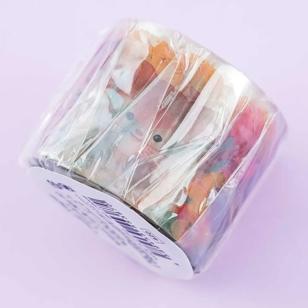 - A cute roll of masking tape featuring a print of a cat in a flower garden