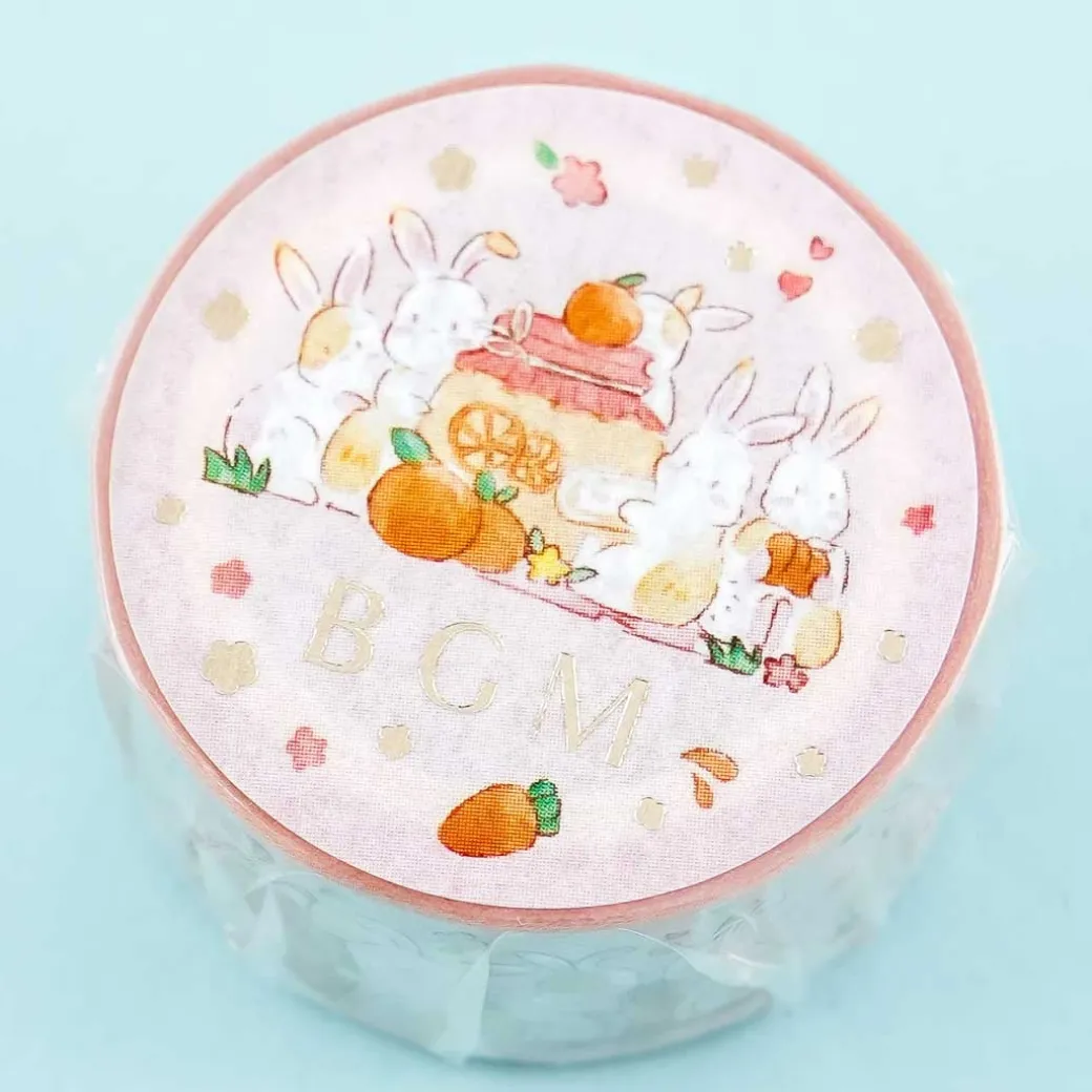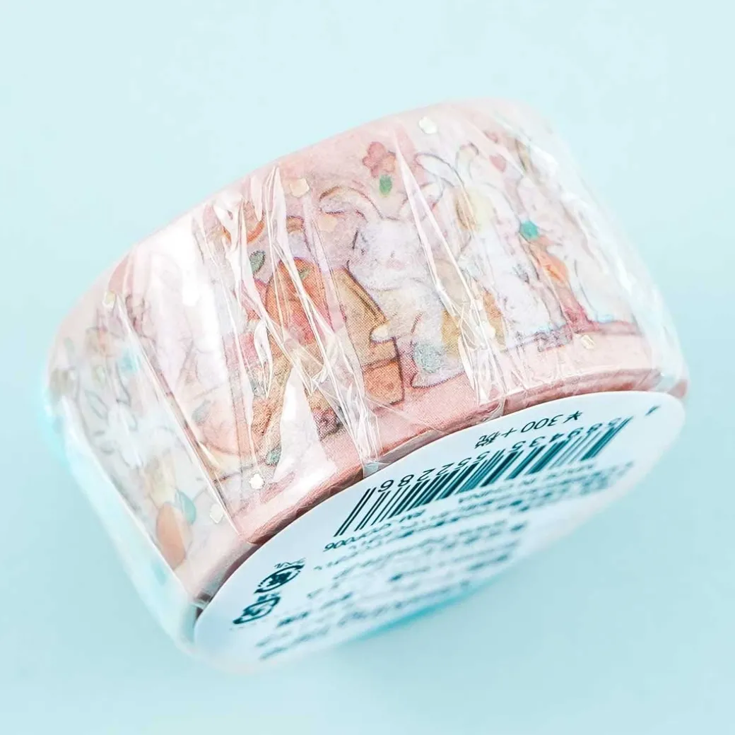 - A super cute roll of masking tape featuring prints of bunnies having a party