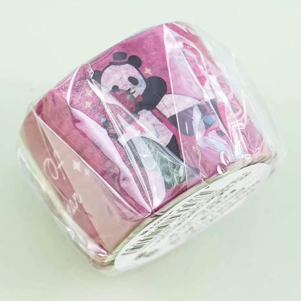 - A super cute roll of red deco tape with illustrations of a panda bear doing different activities