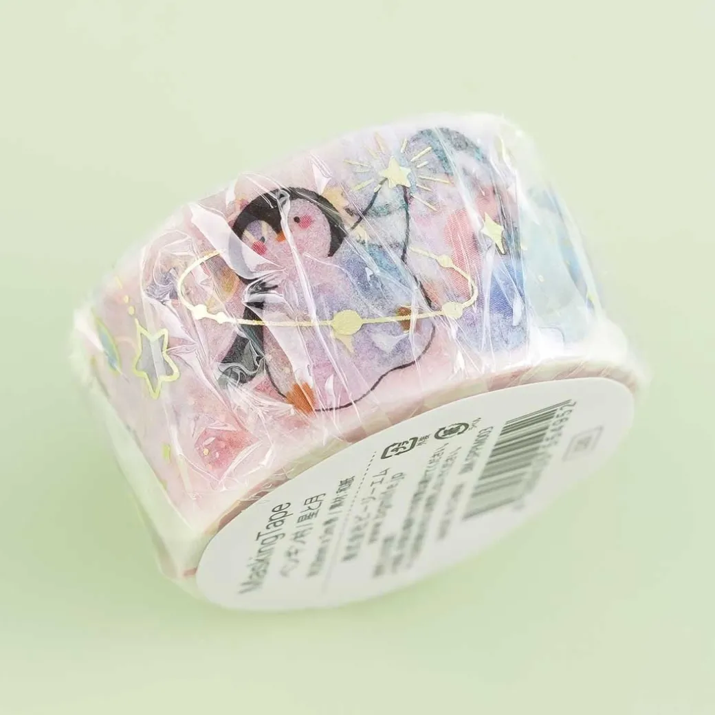 - A roll of super kawaii deco tape with illustrations of penguins, stars, and the moon