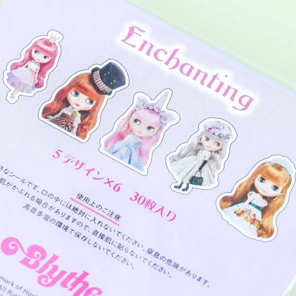 - A kawaii pack of sticker flakes featuring Blythe dolls dressed up in cute outfits