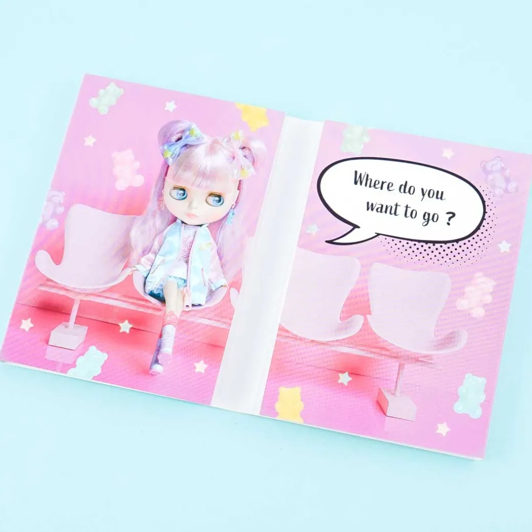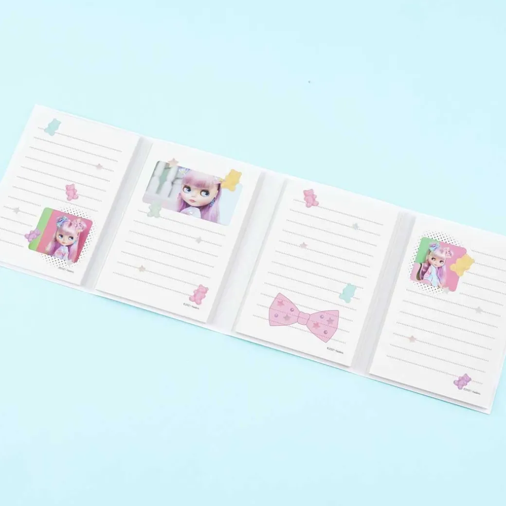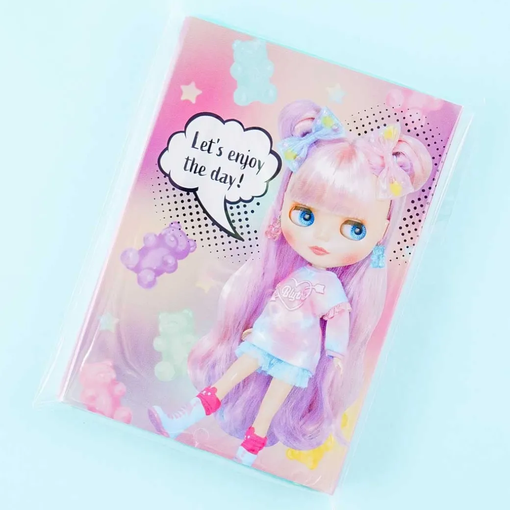 - A kawaii set of memo pads featuring prints of a Blythe doll in a pastel outfit