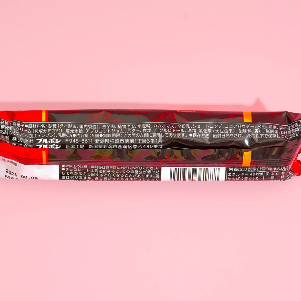 Bring along this pack of bite-sized cake snacks as an emergency treat at work or school! Each chocolate-coated cocoa cake treat has a center made with apricot-scented cocoa cream. It’s the perfect pick-me-up!