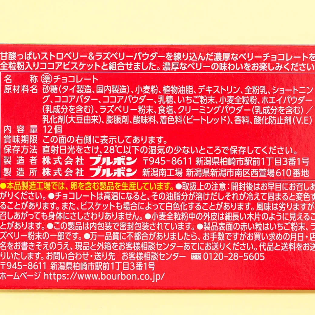 Have your fill of this box of tasty whole-wheat cocoa biscuits. Each piece is paired with strawberry and raspberry chocolate! Pair it with your favorite warm drink.