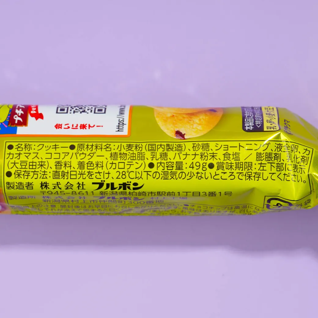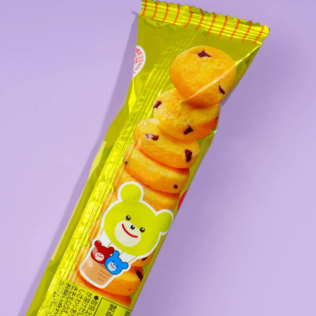 Enjoy this bite-sized snack everywhere you go! It’s a banana-flavored cookie with bittersweet chocolate chips.