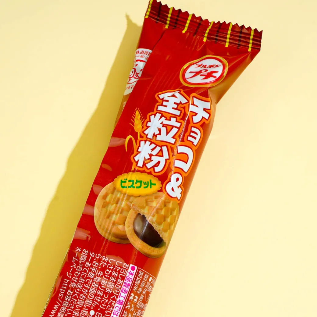 Don’t forget to bring along this pack of bite-sized wheat biscuit sandwiches when you head out of the house! Each piece has a center made of creamy chocolate cream.