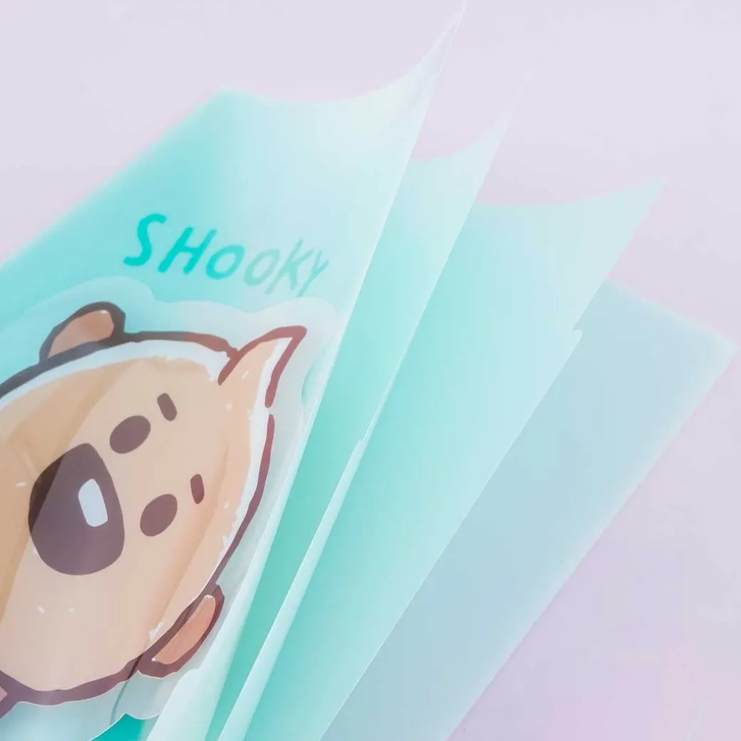 - A semi-transparent file folder with an illustration of BT21’s mini prankster — Shooky