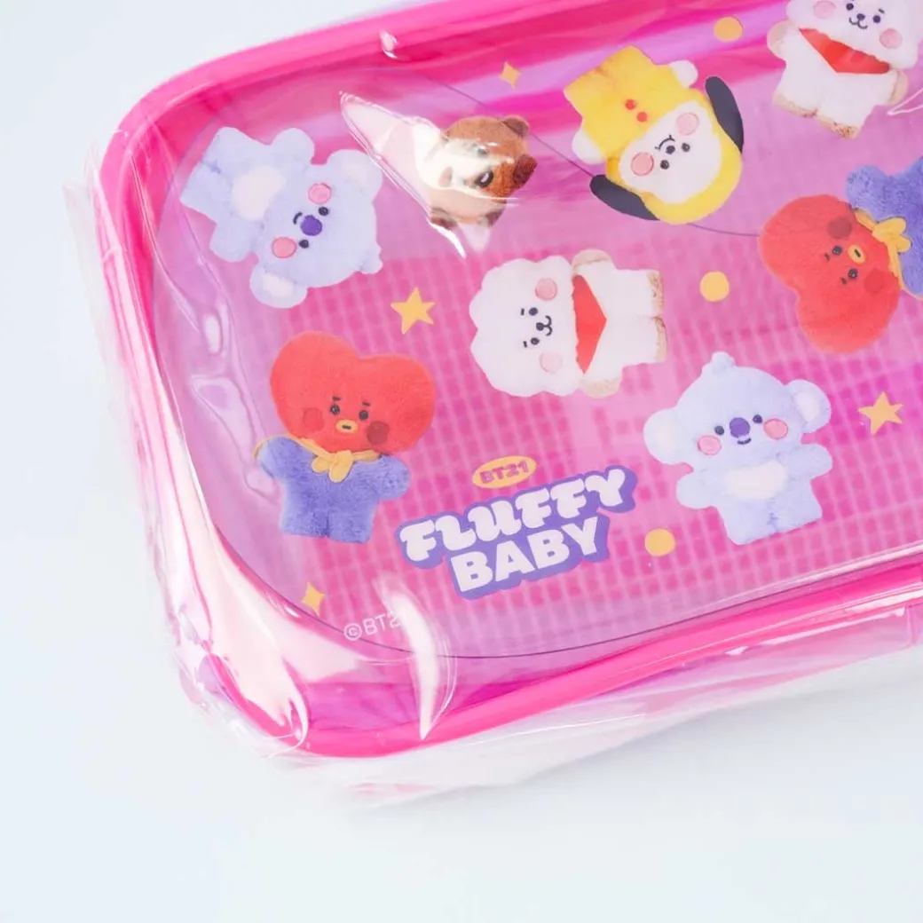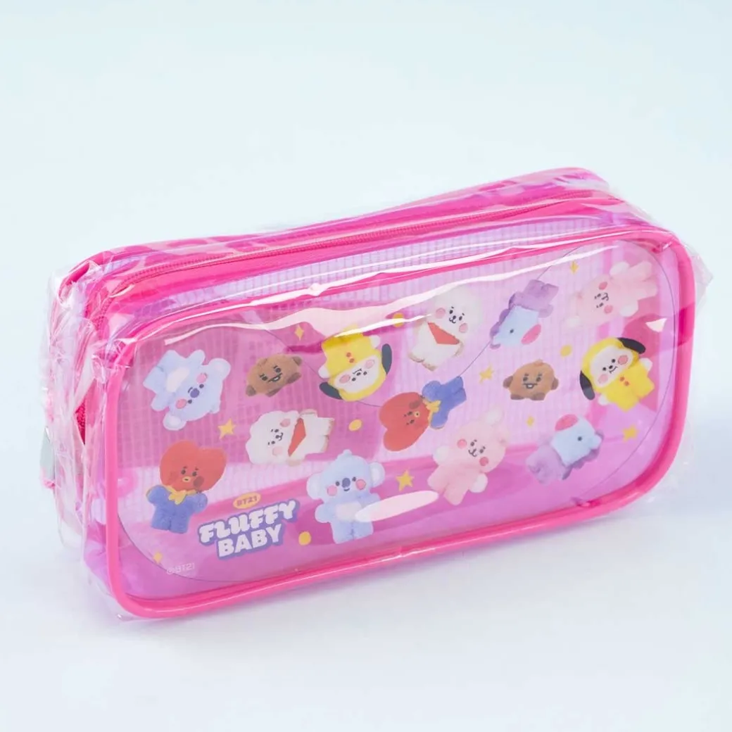 - A super cute pencil case with illustrations of fluffy BT21 baby plushies