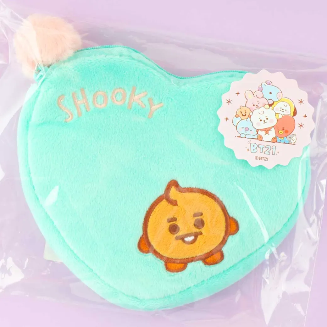 Keep your favorite chocolates, candies, and even small accessories inside this fluffy heart-shaped pouch! It’s decorated with a super cute embroidery of SHOOKY, the mini cookie prankster, and a member of BT21.