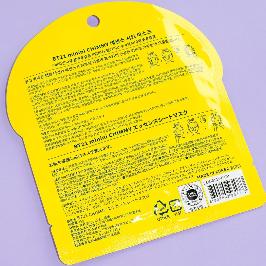 Get Chimmy’s cuteness and shine! This sheet mask has a clear ampoule that’s lightly absorbed into the skin and makes your face radiant.