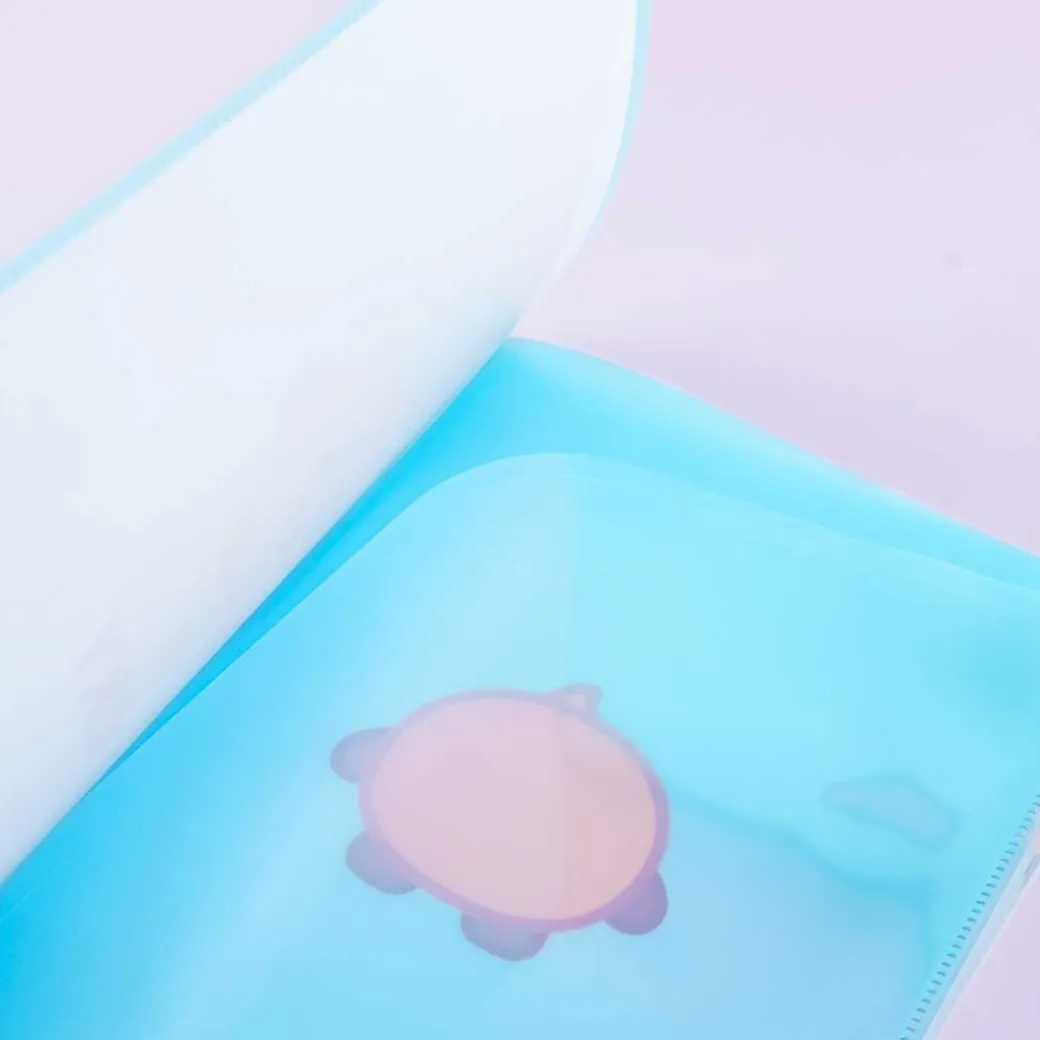 - A semi-transparent A4 file folder with prints of the mini prankster, Shooky