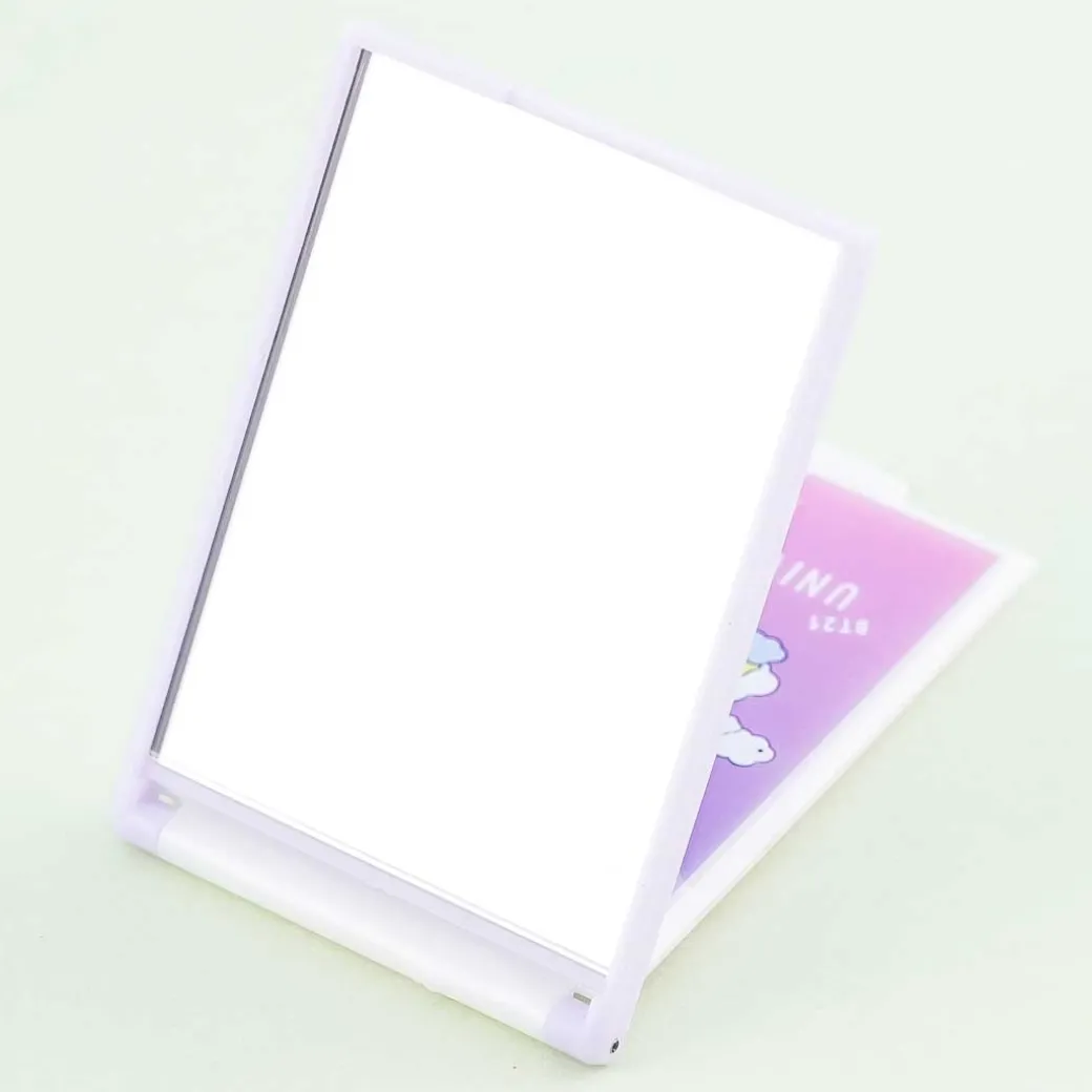 - A super cute folding mirror featuring illustrations of BT21 characters riding a cloud