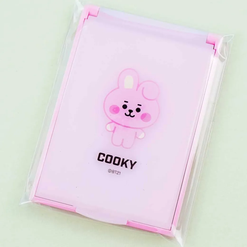 - A kawaii folding mirror featuring prints of the baby version of Cooky from BT21 Universe