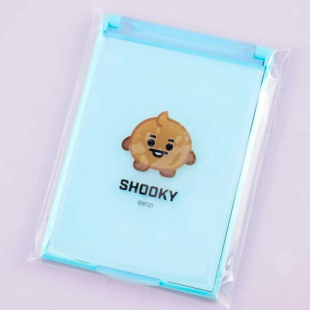 - A cute folding mirror illustrated with the baby version of BT21 Universe’s Shooky